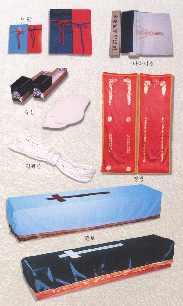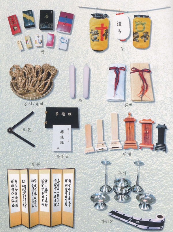 Àå·Ê½Ã¿¡ »ç¿ëµÇ´Â ¿ëǰÀ¸·Î ¸¸¼öÇâ, ¸ñÇâ, ÃÊ, Çâ·Î, ÃÐ´ë ¼Òµ¶¾à(¾ËÄÝ, ¼¼Á¤´ë), Å»Áö¸é, ȬÀ̺Ò, »çÁø¸®º», µÎ°Ç, ¿ÏÀå ÇàÀü ¿Ü¿¡µµ ¿µ³²Áö¹æ¿¡¼´Â °üÀ§¿¡´Â ¿îÀ» ¾Æ·¡¿¡´Â ¾Æ·Î ±¸ºÐ »ç¿ëÁßÀÎ ¿î¾Æ(ê£ä¬)µîÀÇ °¢Á¾ ¿ëǰµéÀÌ ÀÖ½À´Ï´Ù. |