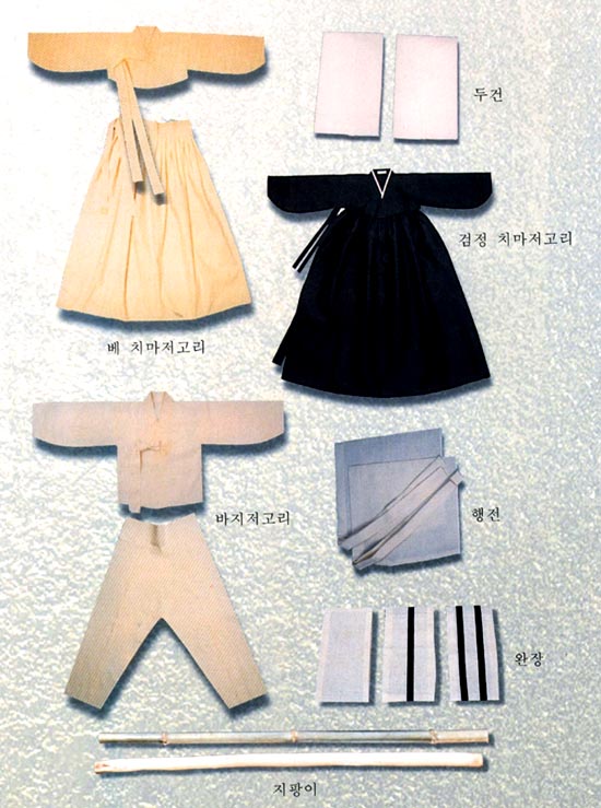 »óÁÖ°¡ ÀÔ´Â ¿ÊÀÔ´Ï´Ù. °¡Á¤ÀÇ·ÊÁØÄ¢¿¡ "»óº¹Àº º°µµ·Î ¸¶·ÃÇÏÁö ¾Æ´ÏÇÏ°í ³²ÀÚ´Â °ËÀº»ö, ¿©ÀÚ´Â Èò»ö ¿ÊÀ» À﵂ Æò»óº¹µµ °¡´ÉÇÏ´Ù"·Î ±ÔÁ¤µÇ¾î ÀÖ½À´Ï´Ù. ³²ÀÚ »óÁÖ´Â µÎ·ç ¸¶±â,¹ÙÁö Àú°í¸®µîÀÌ ÀÖ½À´Ï´Ù. ¿©ÀÚ »óÁ¦´Â Ä¡¸¶ Àú°í¸®°¡ ÀÖ½À´Ï´Ù.
